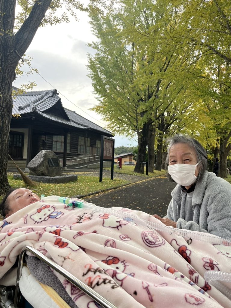 「去年もきたね〜」と、何気ない会話の中に、発症して15年が経過経ち、急速な進行に戸惑った日々から、寝たきりとなってしまったけど、本人家族の穏やかな日々が感じとれました。